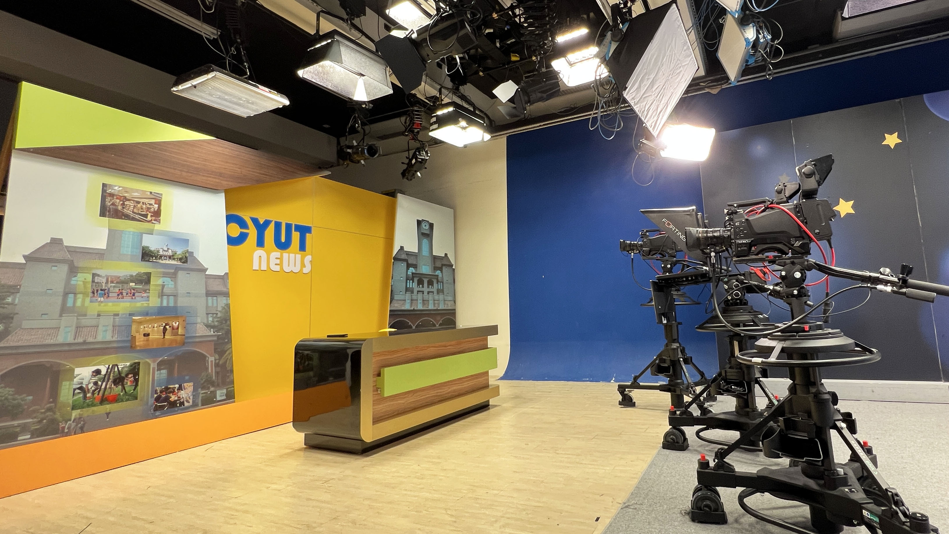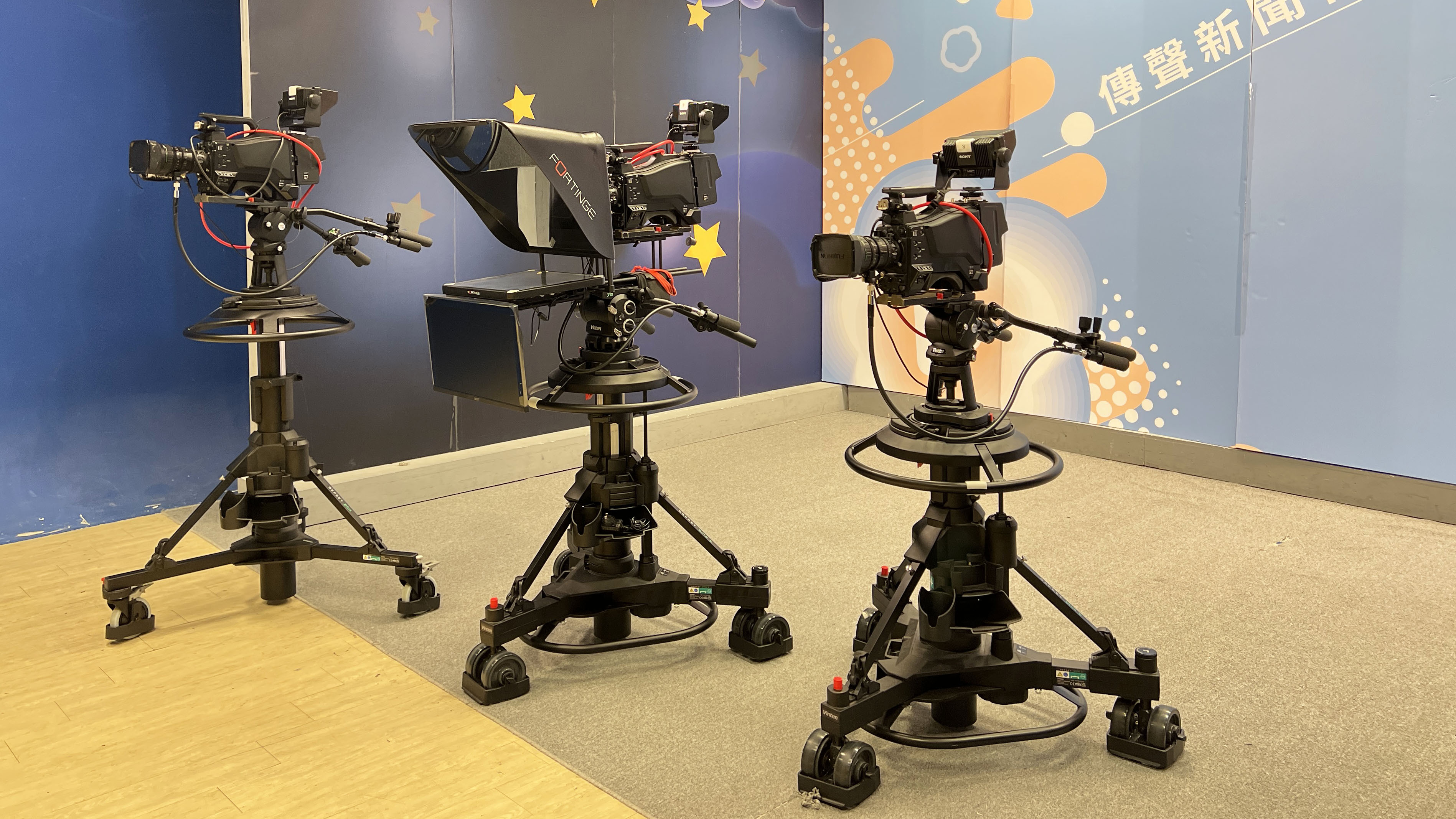SONY HXC-D70K HD棚內攝影機 3台 Vinten攝影機升降腳架 3套 指向性麥克風Stand 棚內讀稿機 42吋液晶電視 ARRI T1 1000W 4盞 ARRI Skypanel S60 4盞 KINO FLO Parabeam 2盞 ZOOM LED200 2盞 ETC攝影棚冷光燈14盞 燈光彈簧手14支 |